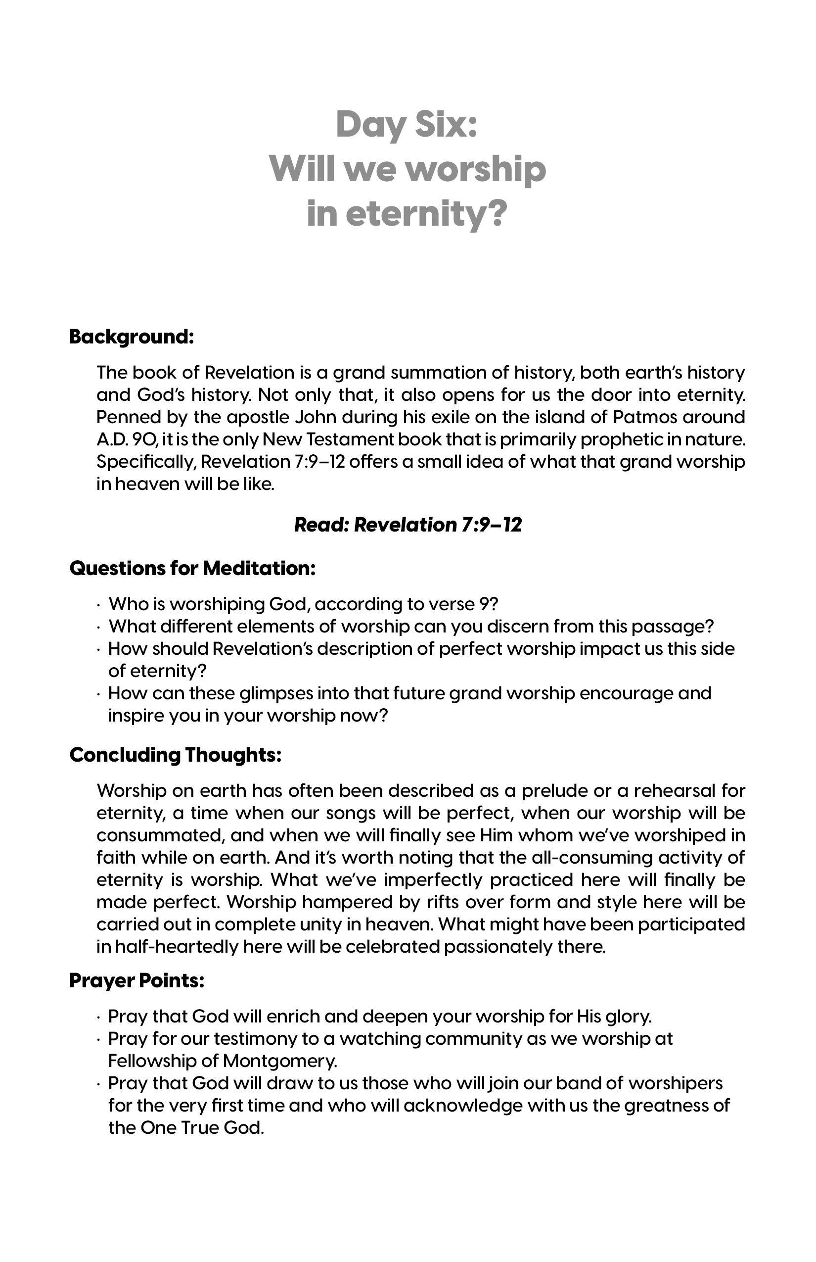 Day Six: FT1 Devotional by fellowshipofmontgomery - Issuu