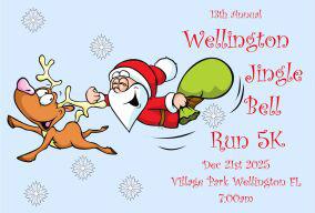 Wellington Jingle Bells 5K -This is the coolest Toy Drive in Town. Prizes for Male Female Age Group, Santa, Mrs. Claus, Elves & Stroller Division. The 12th Annual Wellington Holiday Run 5K (Certified by USA Track and Field) will be held on Sunday December 22, at 7:00 am around the inside of the Village Park campus, located at 11700 Pierson Rd Wellington, FL 33414. Register Now - https:// runsignup.com/Race/Events/FL/Wellington/ WellingtonJingleBellsRun