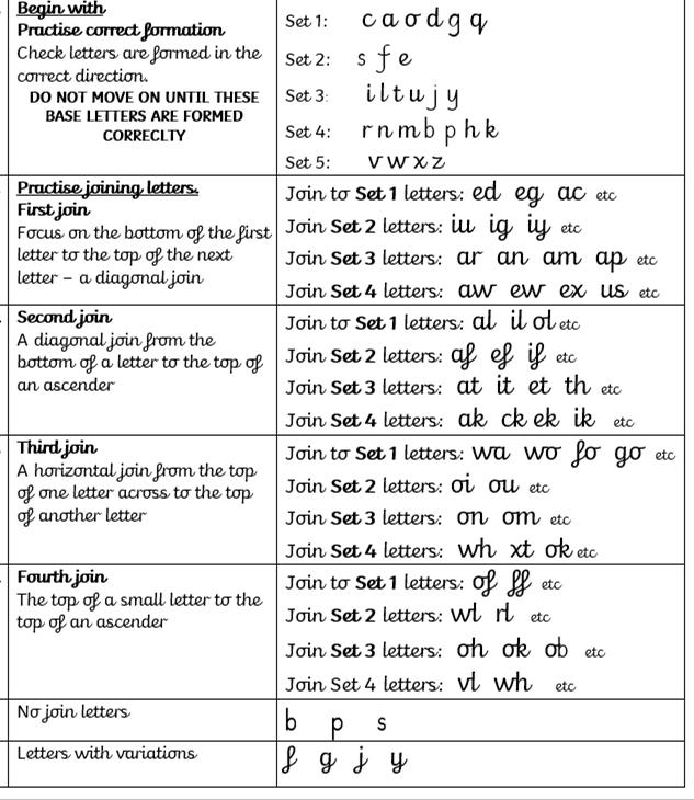 During handwriting lessons, the children are encouraged to use their preferred hand and to sit correctly: