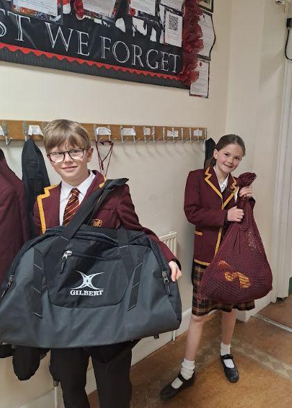 The children should wear their ‘day’uniform to school, apart from Saturdays. On those days they should come into school in their games kit.This reduces the need to carry heavy bags to school and also lessens the amount of sports kit going astray!