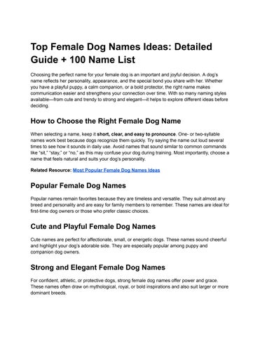 The best female dog name is one that feels right every time you say it. Take your time, try a few names out loud, and see how your dog responds. Whether you choose a popular, cute, unique, or strong name, the perfect choice will strengthen your bond and become part of countless happy memories. Your dog’s name is the start of her story—make it special. ?✨