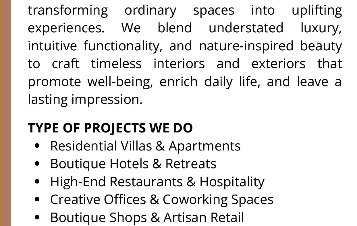 Founded with over 10 years of passion and expertise, The Intuitive Spaces by Andrea Kriskó is a boutique architectural design studio dedicated to transforming ordinary spaces into uplifting experiences. We blend understated luxury, intuitive functionality, and nature-inspired beauty to craft timeless interiors and exteriors that promote well-being, enrich daily life, and leave a lasting impression.