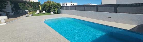 Resin’s versatility allows for customisable colours and patterns, blending well with various landscape designs, and are considerably cooler to the touch than traditional materials. Resin pools and terraces are UV stable, preventing colour fading, and they resist cracks and chips, providing long-lasting beauty. Their eco-friendly and permeable qualities also enhance drainage and reduce environmental impact.