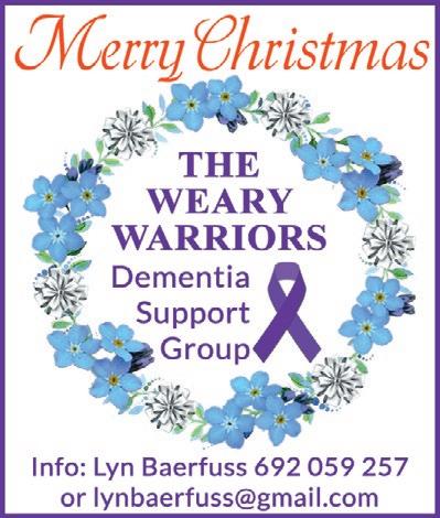 If you have a partner or loved one with Dementia or Alzheimers, and you would like to join us, you would be very welcome. Telephone Lyn Baerfuss on 692 059 257 for more details.