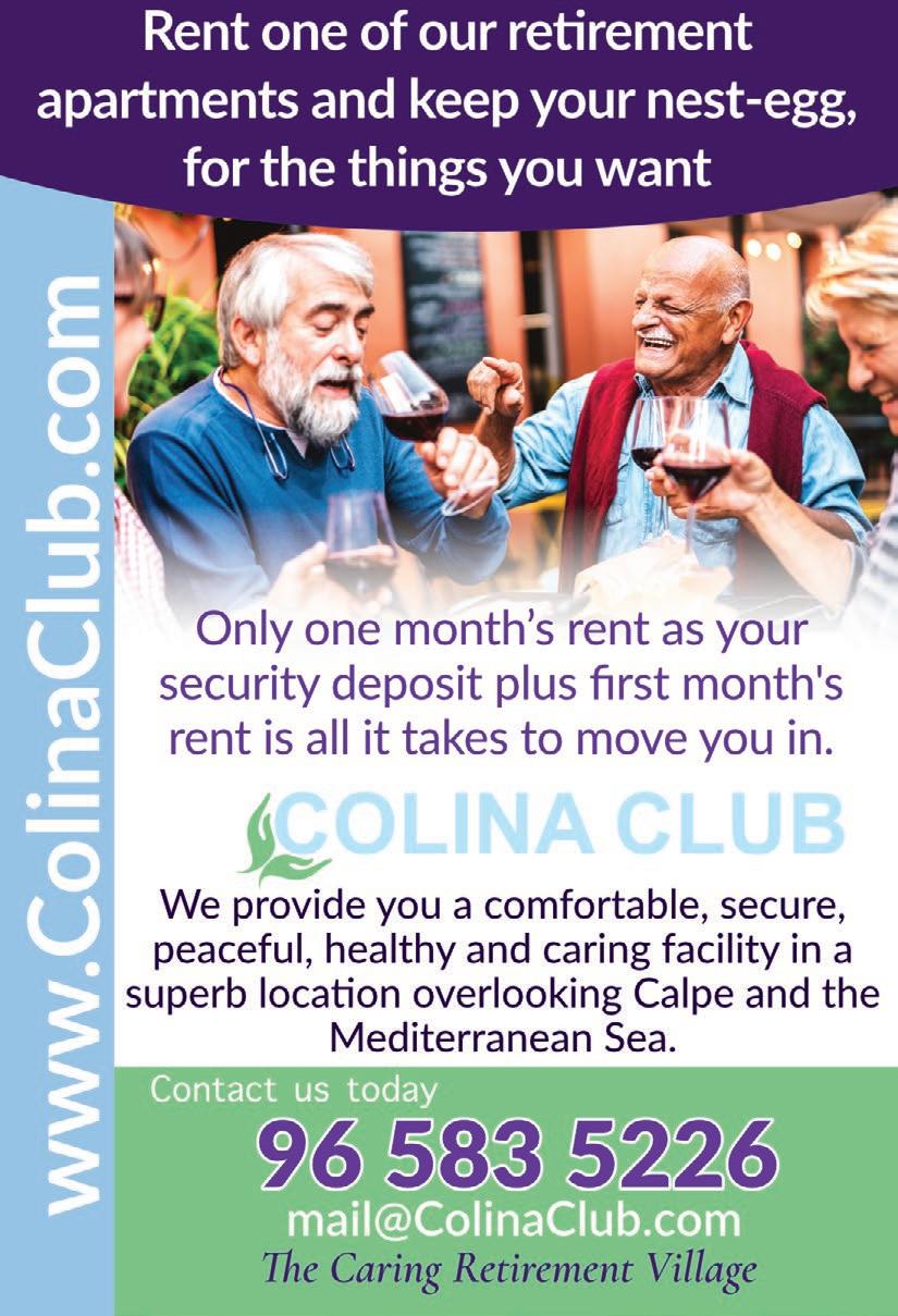 Insurance Altea: C/ Conde de Altea nº 65 (N332), 03590 Altea (Alicante). Tel: 96 584 0753, Mob/WhatsApp: 660 236 874. Email: natalie@insurancealtea.es. Website: www.insurancealtea.es. See our advert on page 4.