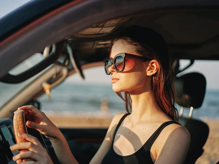 Choose lenses for driving in bright sunshine - Polarised lenses are a good option for driving during summer months as they eliminate glare from horizontal surfaces, such as roads, water and sand. They also offer 100% UV protection, improve contrast and help ease the strain on your eyes. Avoid dry eyes - Make sure air vents are angled in such a way that cool air is not blowing into the face, as this can dry out eyes. Also make sure to blink regularly, to prevent dryness. When we are very focused and attentive on something (such as driving), our tendency is to blink less.