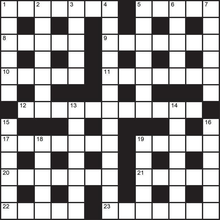 Across: 1 Upright, 5 Stain, 8 Drama, 9 Nervous, 10 Noisy, 11 Eternal, 12 Telephonist, 17 Naphtha, 19 Piece, 20 Respect, 21 North, 22 Waste, 23 Decided.