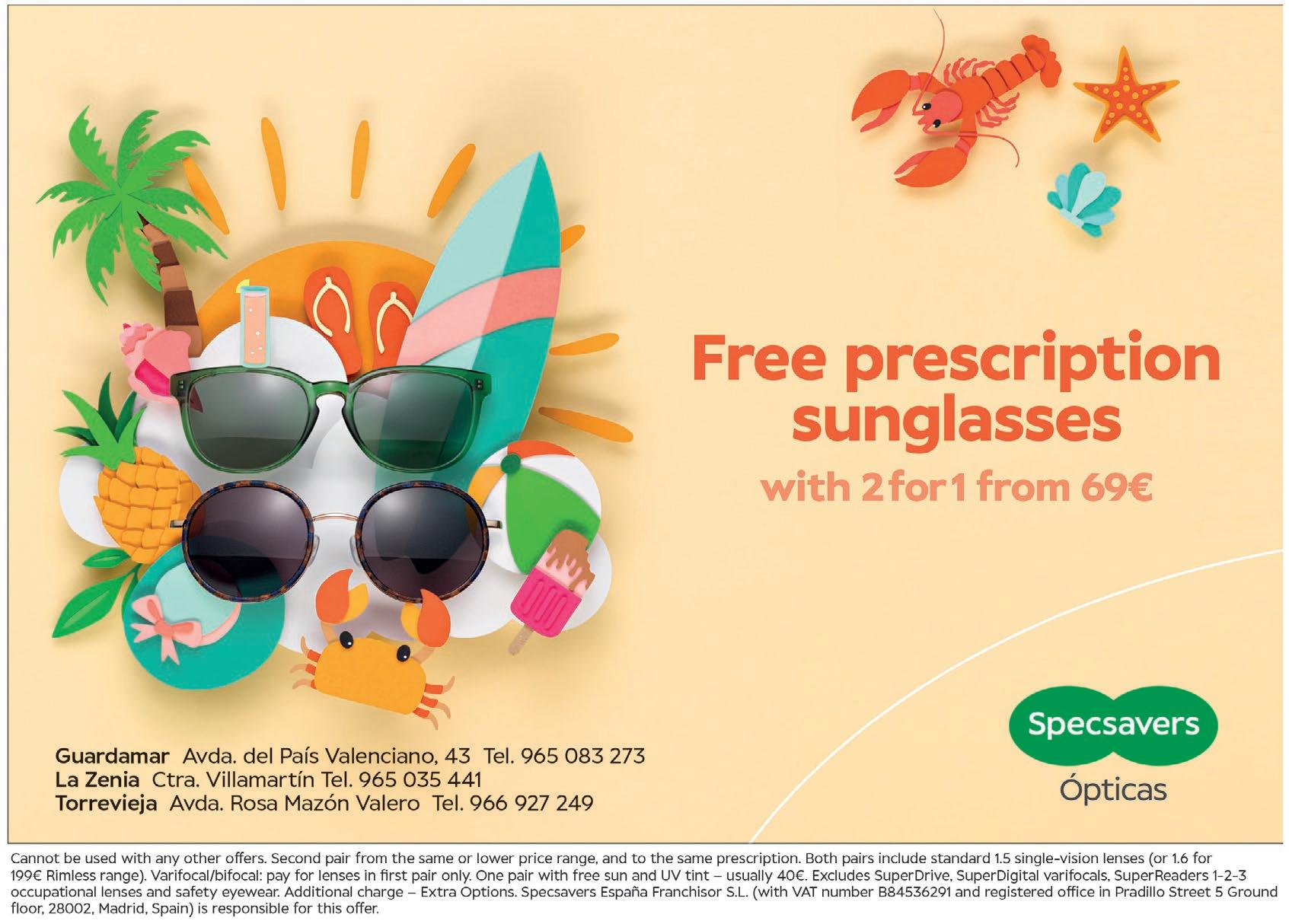 There are six Specsavers Ópticas stores on the Costa Blanca, in Javea, Calpe, Benidorm, Torrevieja, Guardamar and La Zenia. For more information or to request an appointment at your local store, visit www.specsavers.es.