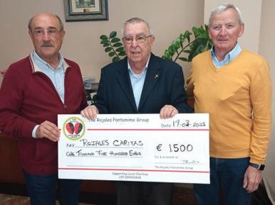 Rojales Pantomime Group donate 1500€. Rojales Cáritas were delighted to be presented with this donation by John Fagg, President of the Group from the total of 5000€ raised thanks to all who attended and bought tickets allowing the Group to make these very worthy charitable donations. The Group’s next merry
