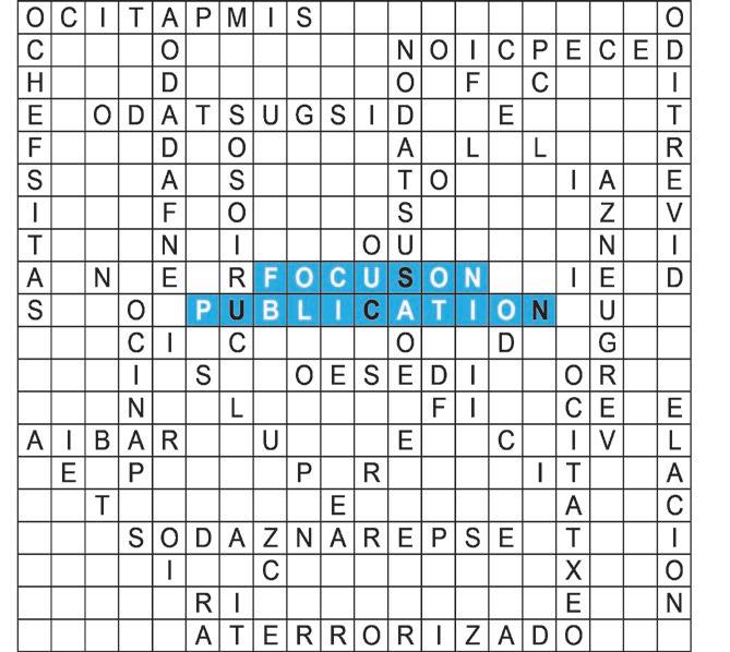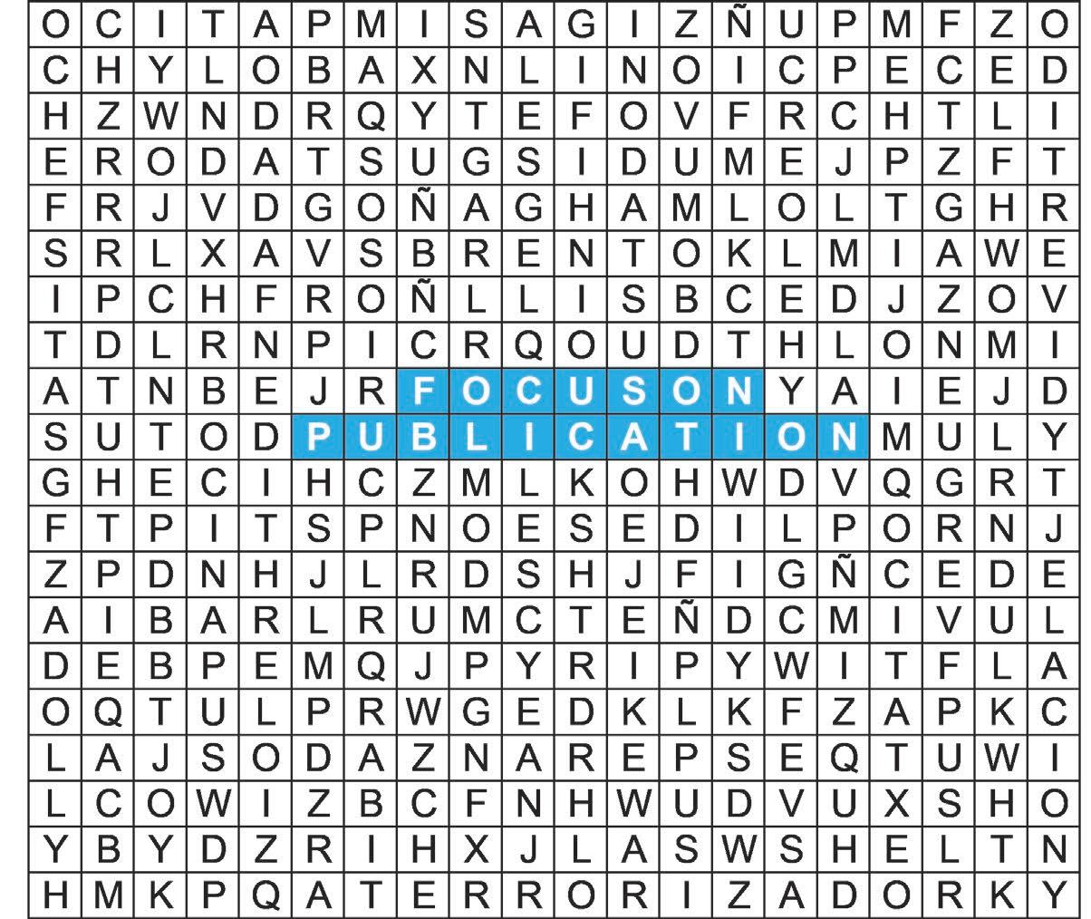 Find all the Spanish words from the word list in the puzzle grid. Words may be found going forwards, backwards, up, down or diagonally. Answers can be found in the back of the magazine. Good Luck.