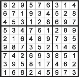 Here are two Sudoku puzzles of different skill levels for you to try. It is not a math game at all - it is a pure logic game. Fill in the grid so that every row, every column and every 3 x 3 grid contains the digits 1 through to 9 with no repeats, which means that no number is repeated in any row, column or box.