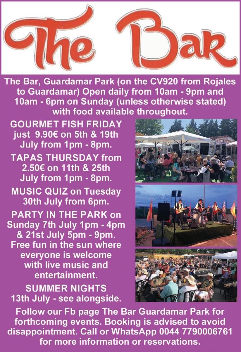 We work with several fantastic venues, Alannia 5* Resorts near Catral & also Guardamar, who offer stunning locations, cabins, pitches and glamping for those that like quality accommodation at a good price and take in our fab shows. The Bar at Guardamar Park, is a lovely friendly venue with great staff that also offers some pitches for events we hold there.