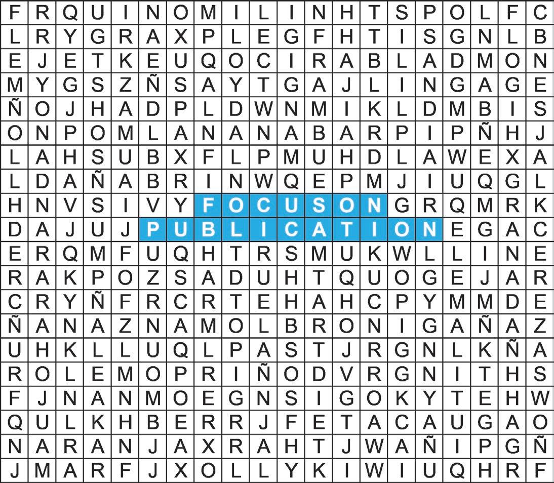 Find all the Spanish words from the word list in the puzzle grid. Words may be found going forwards, backwards, up, down or diagonally. Answers can be found in the back of the magazine. Good Luck.
