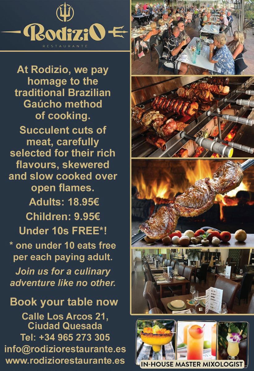 The enthusiastic Rodizio team would love to welcome you to Rodizio Restaurant, with a difference. You will have the option when booking of whether you would like to eat in our air conditioned restaurant, or on our lovely shaded terrace, with a view for miles. Great way to see the sun set. We are an all you can eat, Brazilian Restaurant. We service the finest meats from Galicia, here in Spain. To get your taste buds flowing, firstly you will be able to help yourself to the unlimited salad bar, with a wide range of different options and a selection of side salads which may include potato bravas, a chef's special rice dish and homemade garlic bread and more.