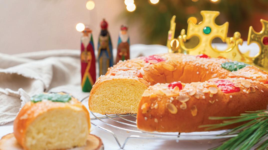 The Roscón de Reyes is a traditional Spanish sweet bread enjoyed especially during the Christmas season, most famously on January 6th, the Day of the Three Kings. Shaped like a large ring, the roscón is made from a soft, slightly sweet dough flavoured with orange blossom water. Its top is usually decorated with candied fruits, which symbolise the jewels of the crowns worn by the Three Kings. Many versions are filled with whipped cream, pastry cream, or chocolate, though the classic version is unfilled.