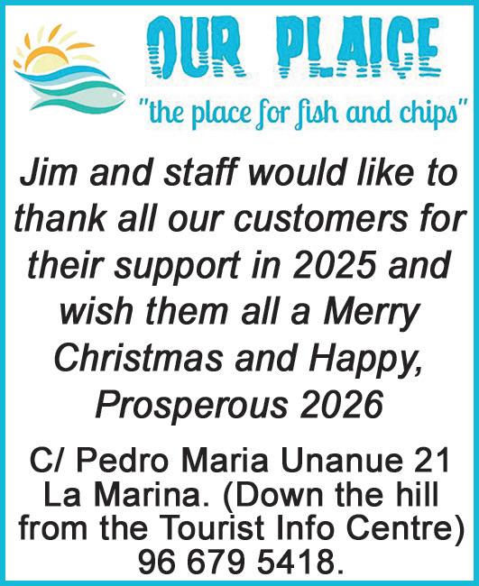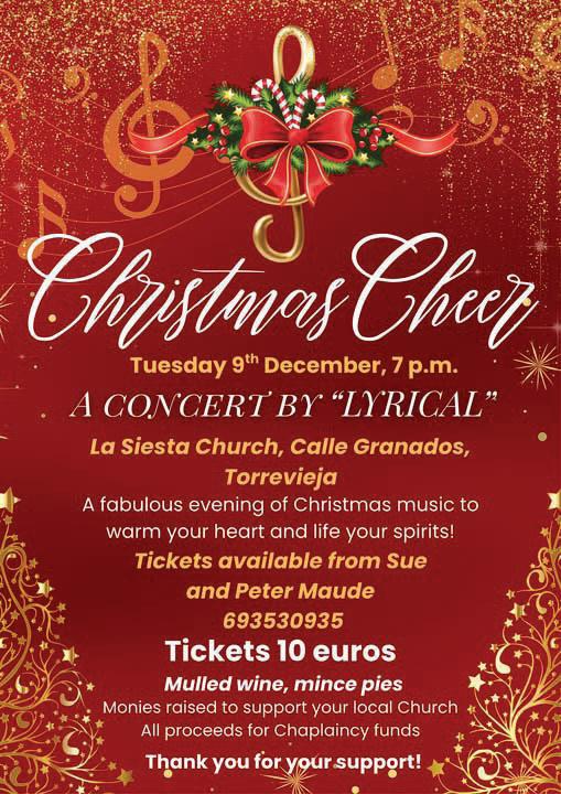 For information on the Church of England Chaplaincy of Ss Peter and Paul, Torrevieja Christmas Church Services visit the church’s Facebook page @anglicantorrevieja or go to the website www.c-of-e-torrevieja.com