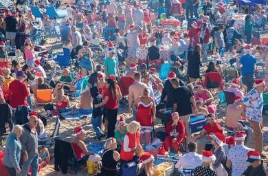 After a pause during the pandemic, the celebration returned in December 2022, attracting more crowds than ever. Today, the event brings together residents and visitors from more than 100 nationalities, many travelling from colder parts of Europe and beyond to enjoy a unique Christmas by the sea. The gathering remains completely spontaneous, with no official organiser or sponsor, though local police help ensure safety and manage the flow of traffic. Most arrive early, in festive clothing (layer it up as it can start off cooler but get very warm if the weather is anything like previous years), carrying picnic tables, chairs, parasols, and cool boxes. Families and friends share homemade dishes from around the world, creating a multicultural feast. The result is a joyful celebration that unites people through food, fun, and the magic of Christmas on the beach.