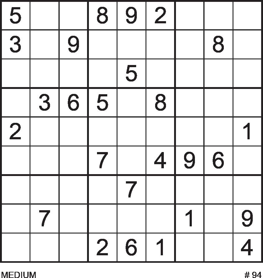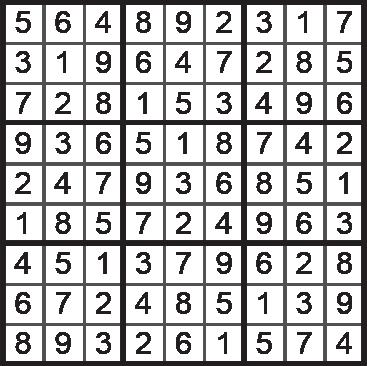 Fill in the grid so that every row, every column and every 3 x 3 grid contains the digits 1 through to 9 with no repeats, which means that no number is repeated in any row, column or box.