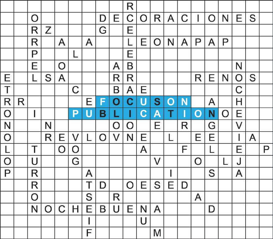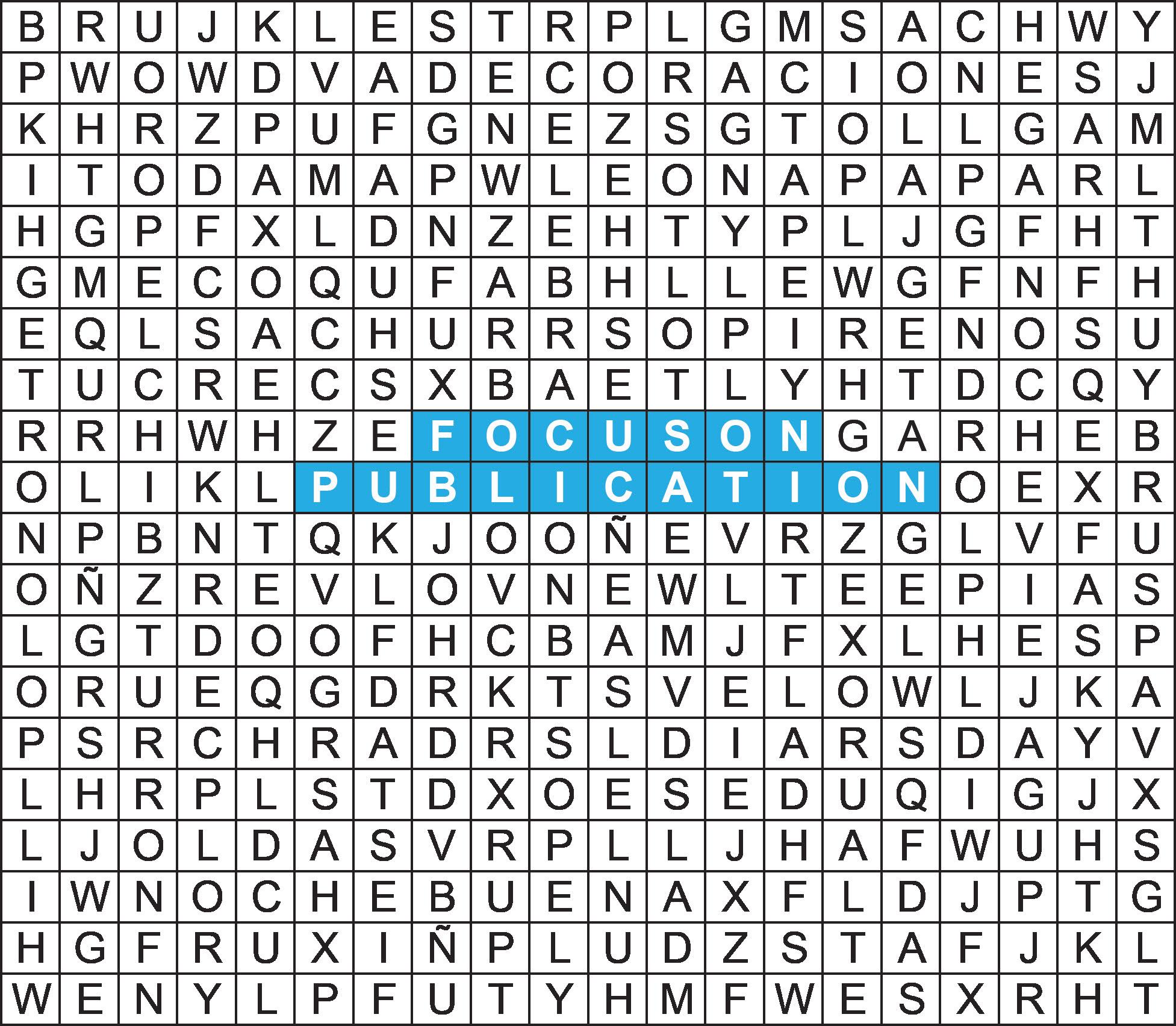 Find all the Spanish words from the word list in the puzzle grid. Words may be found going forwards, backwards, up, down or diagonally. Answers can be found in the back of the magazine. Good Luck.