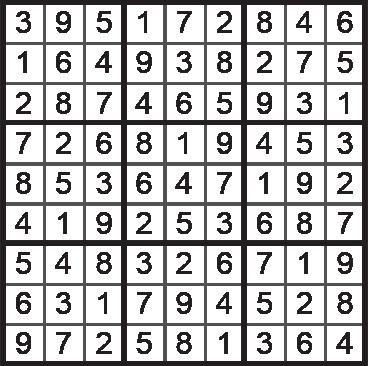 Fill in the grid so that every row, every column and every 3 x 3 grid contains the digits 1 through to 9 with no repeats, which means that no number is repeated in any row, column or box.