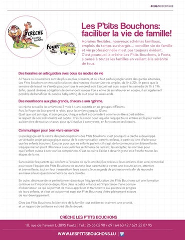 CRÈCHE LES P’TITS BOUCHONS 10, rue de l’avenir L-3895 Foetz |Tél.: 26 55 02 98 / 691 64 63 42 / 621 22 87 95