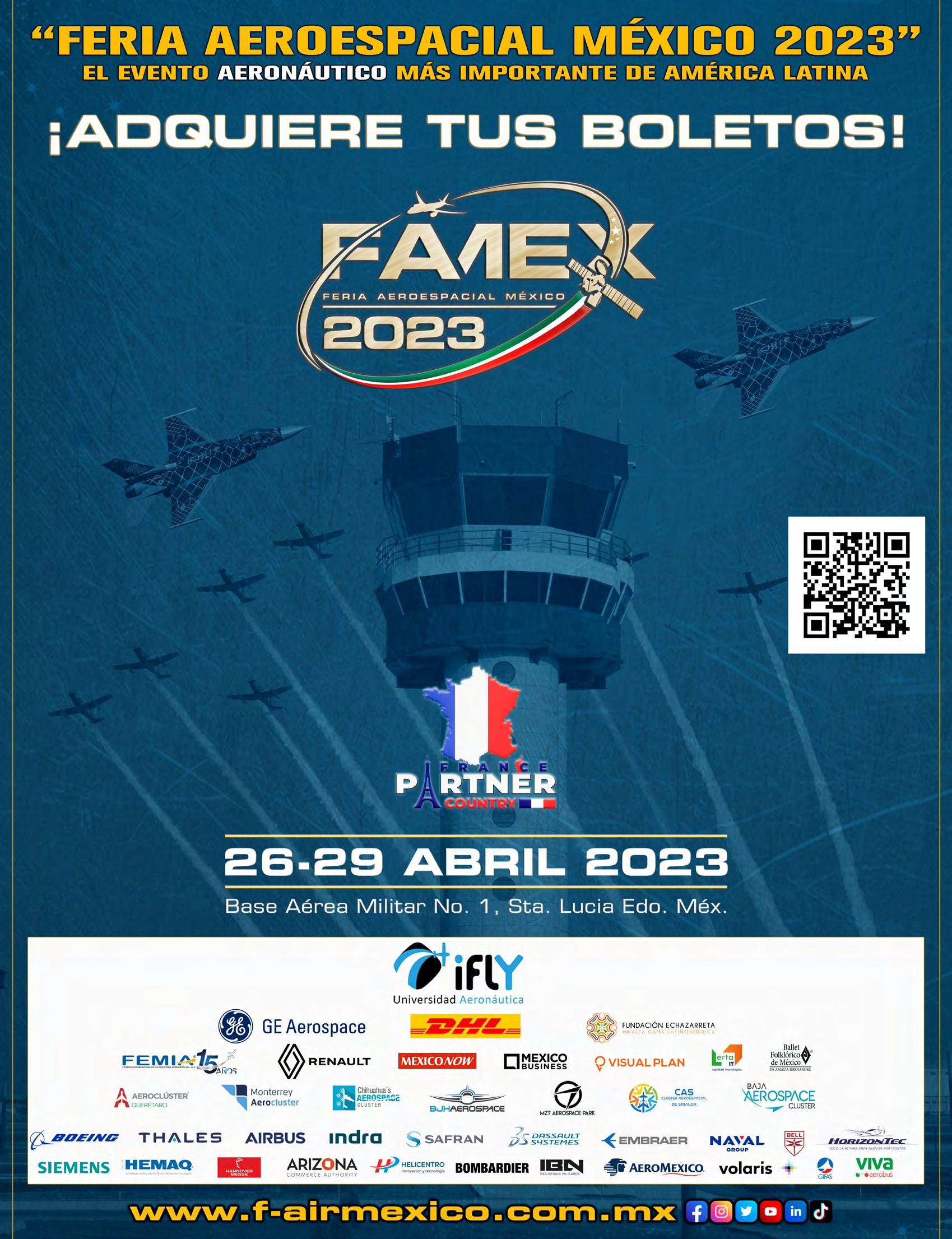 a Feria Aeroespacial México se ha consolidado como el evento más importante de la Industria Aeroespacial en México y Latinoamérica, el cual se realiza cada dos años desde el 2015. Este año, rumbo a su quinta edición, FAMEX 2023 ha redoblado esfuerzos para superar las cifras de récord de asistentes, expositores, países y aeronaves, así como la inversión extranjera directa dentro del sector en México. El éxito del sector aeronáutico que atraviesa nuestro país ha sido clave para la consolidación de México como un punto focal de América Latina en el ámbito aeroespacial, de seguridad y defensa, incentivando el crecimiento económico y la creación de nuevos empleos. La FAMEX, desde su primera edición, ha contribuido de manera notable a la promoción de México en diferentes eventos y congresos nacionales e internacionales, en los cuales se ha dado a conocer la importancia que tiene el país dentro de la industria aeroespacial. Un importante aliado estratégico en producción aeroespacial que genera uno de cada cuatro empleos en este sector a nivel nacional es Francia, país invitado de honor (Partner Country), distinguido por ser uno de los países que más ha apostado por México. La Feria Aeroespacial México se ha destacado por contar con actividades únicas, como el Seminario de Inversión Extranjera, el Foro de Educación Aeroespacial, un Ciclo de Conferencias Técnicas, el Aerospace Summit, los Encuentros de Negocios B2B, vuelos de demostración y la exhibición estática de aeronaves, así como el espectáculo aéreo. Debido al dinamismo y a la gran aceptación que tiene la FAMEX, se han sumado eventos, como el Seminario de Migración a la Industria Aeroespacial, la Cumbre de Rectores y el Congreso de Mujeres de la Industria Aeroespacial, así como el Encuentro de Seguridad Aérea organizado por el Colegio de Pilotos Aviadores de México, entre otras actividades. La Feria contará con seis pabellones denominados Seguridad y Defensa, México, Francia, Estados Unidos, Educativo y por primera vez uno Espacial, cada pabellón contará con un auditorio en donde se llevarán a cabo los diferentes seminarios, paneles y conferencias. Aunado a lo antes mencionado, la FAMEX 2023 lanzó una aplicación interactiva en la que los usuarios pueden acceder a toda la información de las actividades diarias de los eventos, acceso al Lay Out, datos técnicos de las aeronaves en exhibición, reseñas de las empresas expositoras, información del país invitado de honor y la función para organizar tu visita a la feria creando una agenda personal para distribuir tu tiempo, disponible por ahora en Google Play Store.