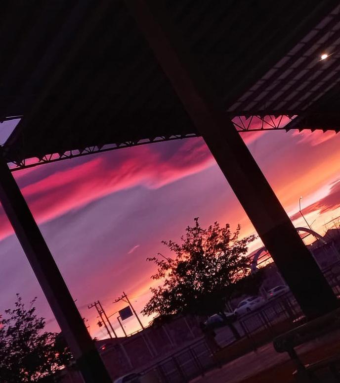 La imagen retrata un atardecer intenso y vibrante que tiñe el cielo de tonos rosados, lilas y naranjas. En el centro, la silueta de un árbol se eleva con delicadeza, delineada por la luz del ocaso, como un recordatorio de la vida que florece incluso en medio de lo cotidiano. La fotografía transmite calma, observación y una pausa necesaria. Es un momento que, aunque simple, se vuelve extraordinario cuando se mira con atención.
