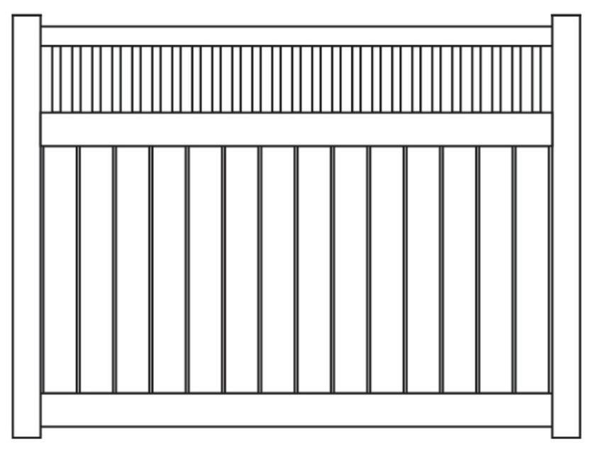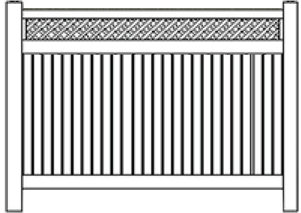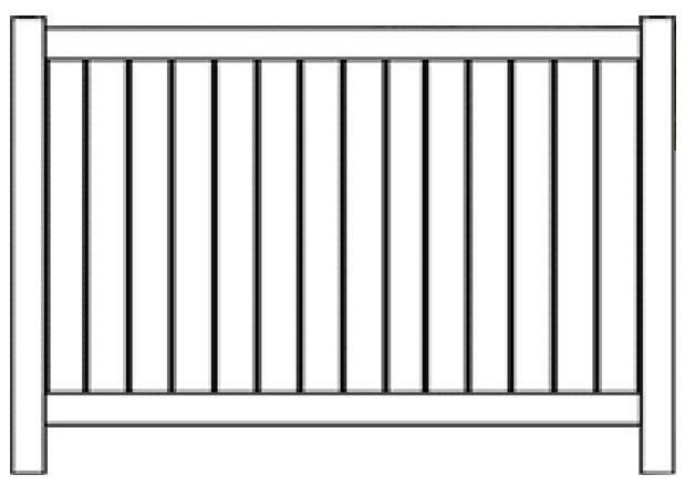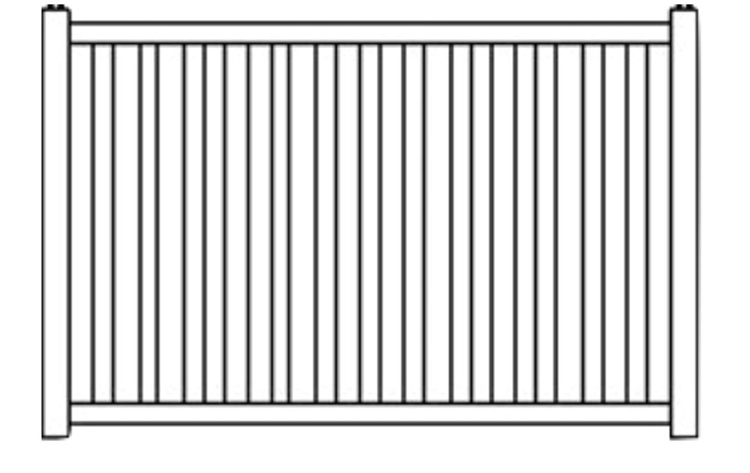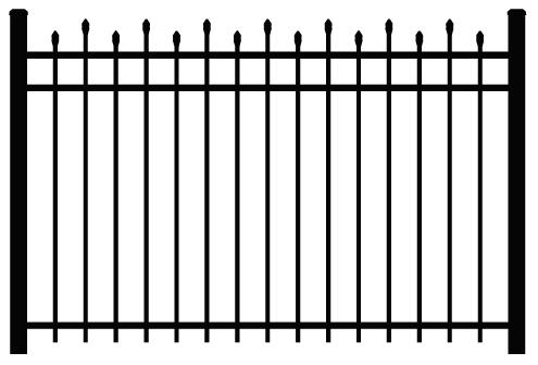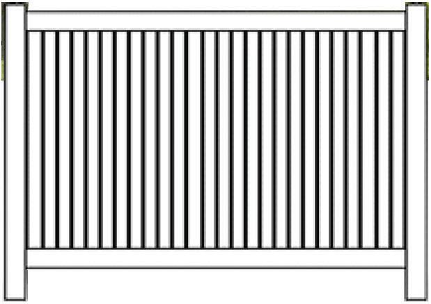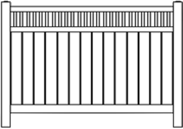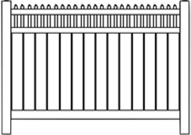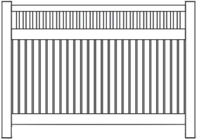 Rails: 2” x 3.5” Hollow Top Rail 2” x 3.5” Mid-Rail on fences 5’ and higher Aluminum insert where required