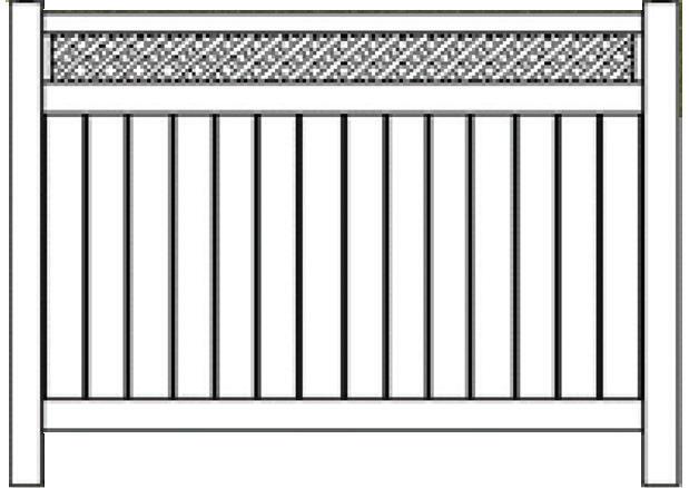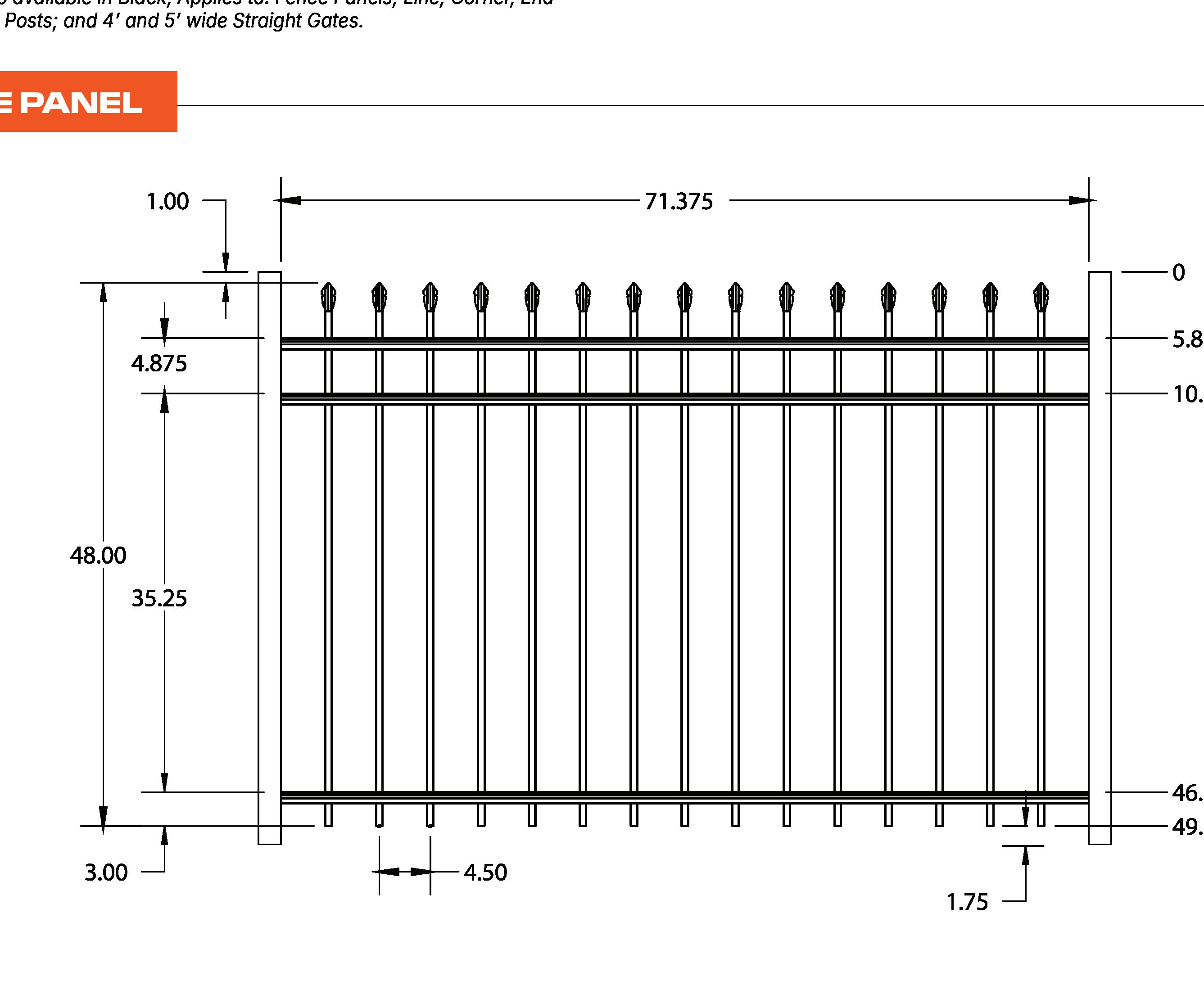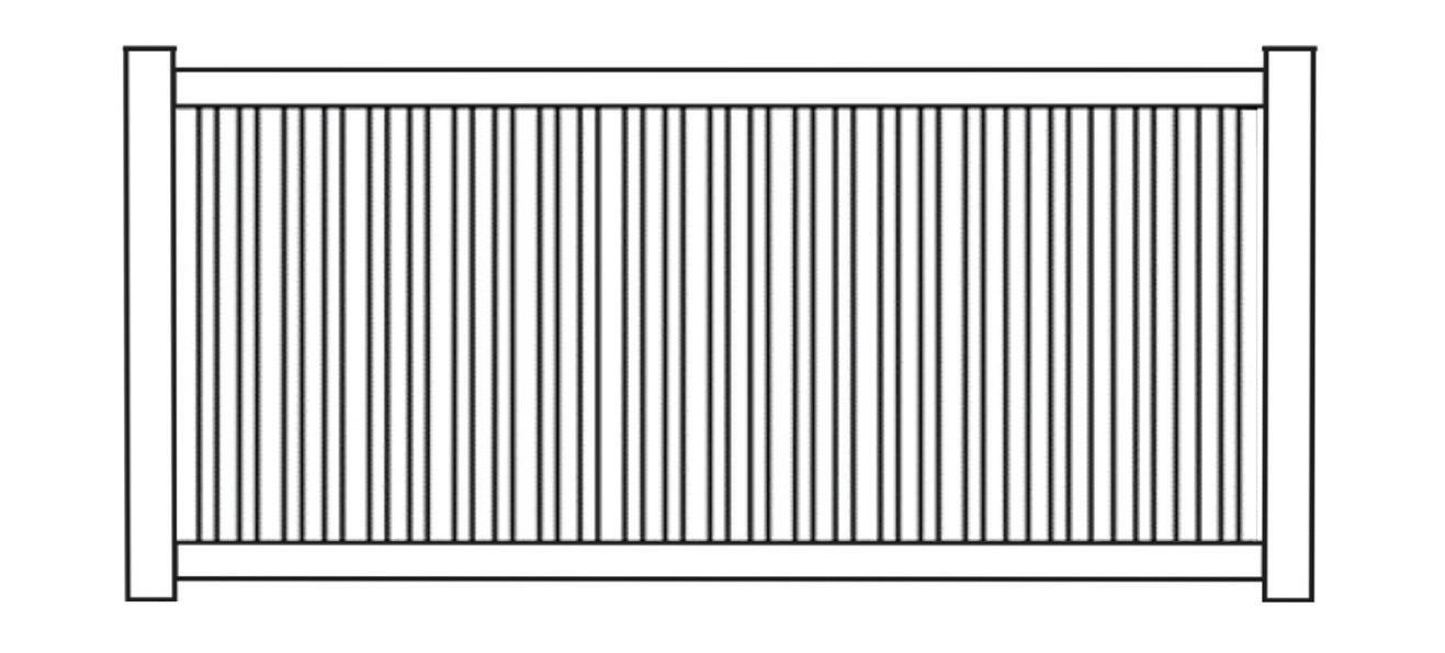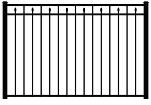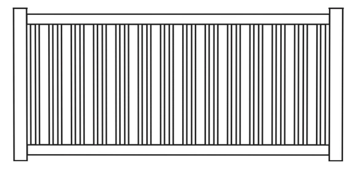 Rails: 2” x 3.5” Hollow Top Rail 2” x 3.5” Mid-Rail on fences 5’ and higher Aluminum insert where required