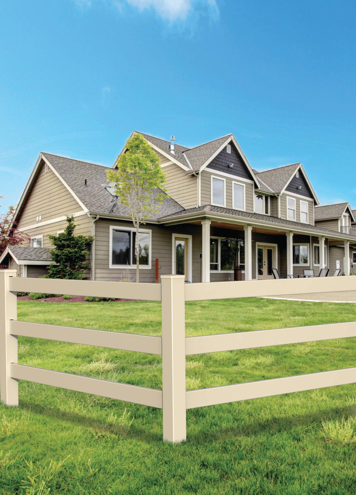 CLASSIC FARMHOUSE CHARM WITH DURABLE, LOW-MAINTENANCE VINYL RANCH RAIL FENCING