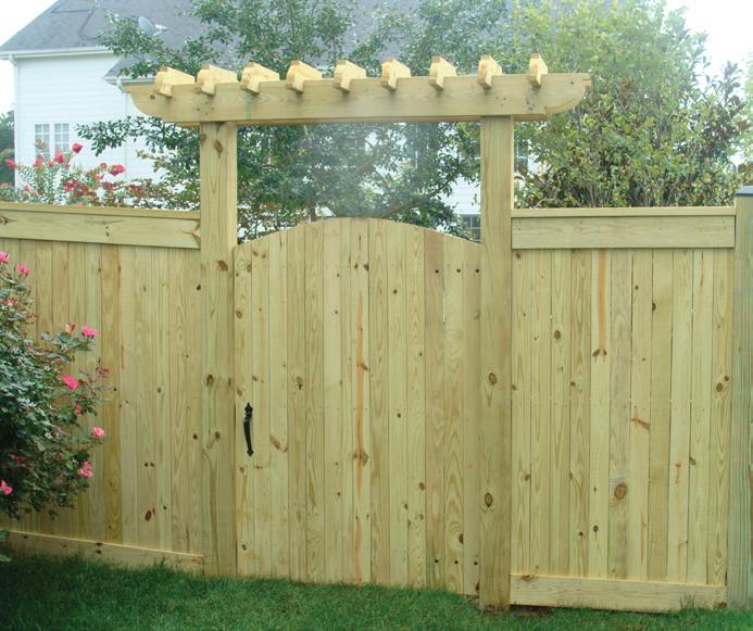 Enhance your wood fence gate with a trellis, available in pressure-treated or cedar wood.