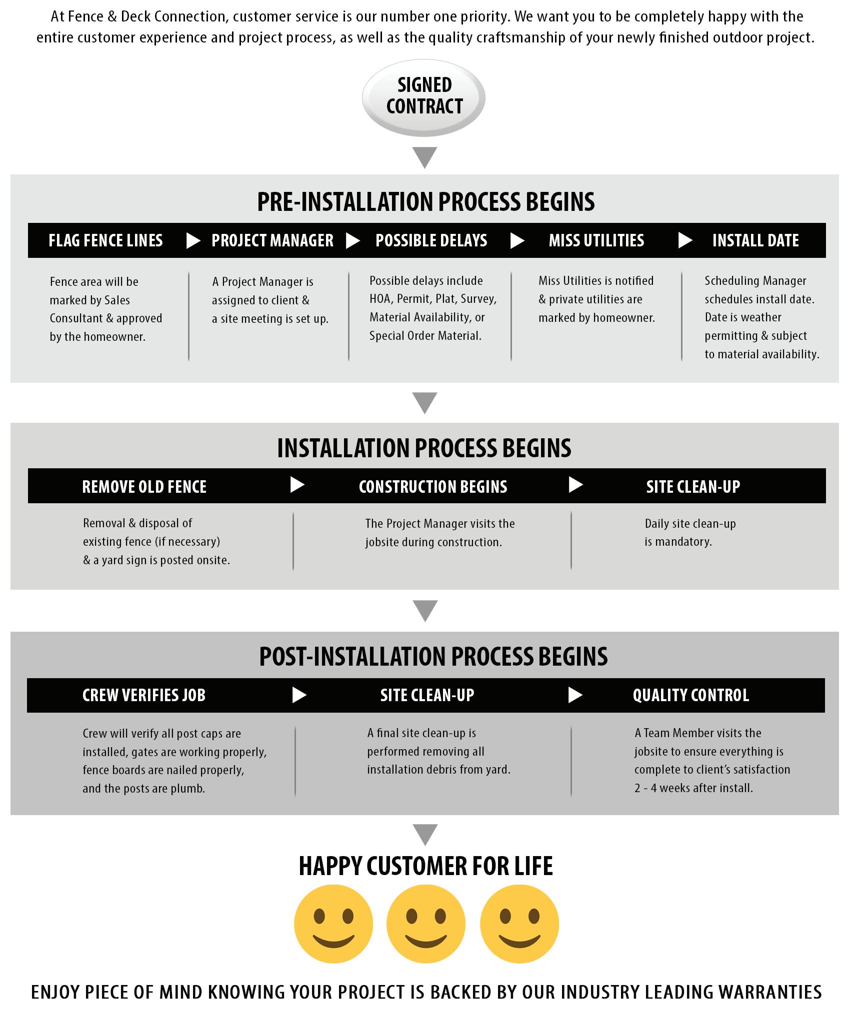 At Fence & Deck Connection, we offer a variety of fencing options using materials that will stand the test of time. Whether you choose vinyl, wood, aluminum or chain link, our fencing is designed to custom fit your unique outdoor space. Complete your design with various architectural features, post styles, and accessories to add charm and instant curb appeal.