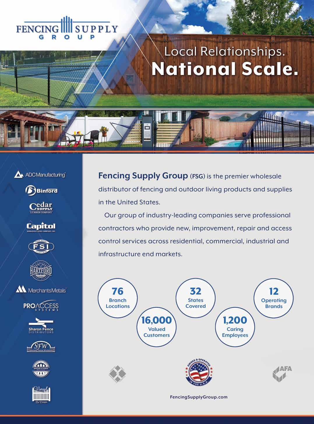 LARGEST AMERICAN OWNED FENCE DISTRIBUTOR & MANUFACTURER The Original “One Stop Shop” For all your fencing needs, from mini mesh to 6 gauge fabric, aluminum box frame gates to residential double drives, we have it all. Need a quote in a minute? We can do it on the fly. One piece backstop posts? We manufacture 2-1/2”, 3” and 4” SPS 40 in lengths up to 40’! We are the one and only “One Stop Shop”.