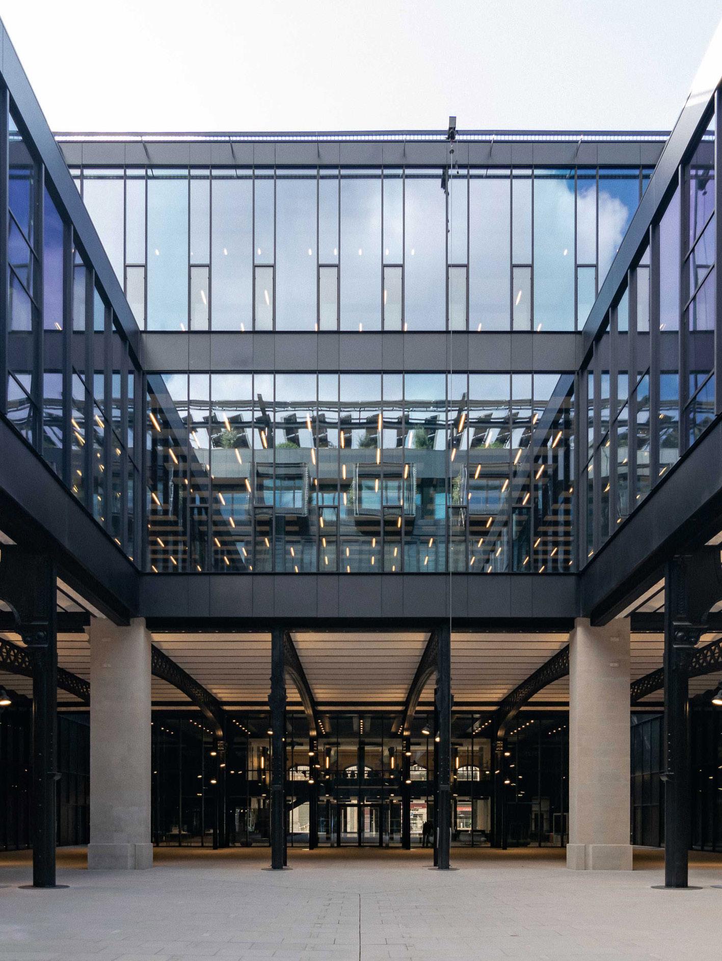 flexibility. This is achieved by preserving monumental structures as well as the industrial character and combining them with powerful, modern elements. The restored arches, the exposed metal structures in the style of Eiffel and the up to 6.80-metre-high tiled ceilings lend the various levels a unique character, while the new glass façades and glazed saw-tooth roofs ensure optimal incidence of natural light and completely new aesthetics in the large halls.
