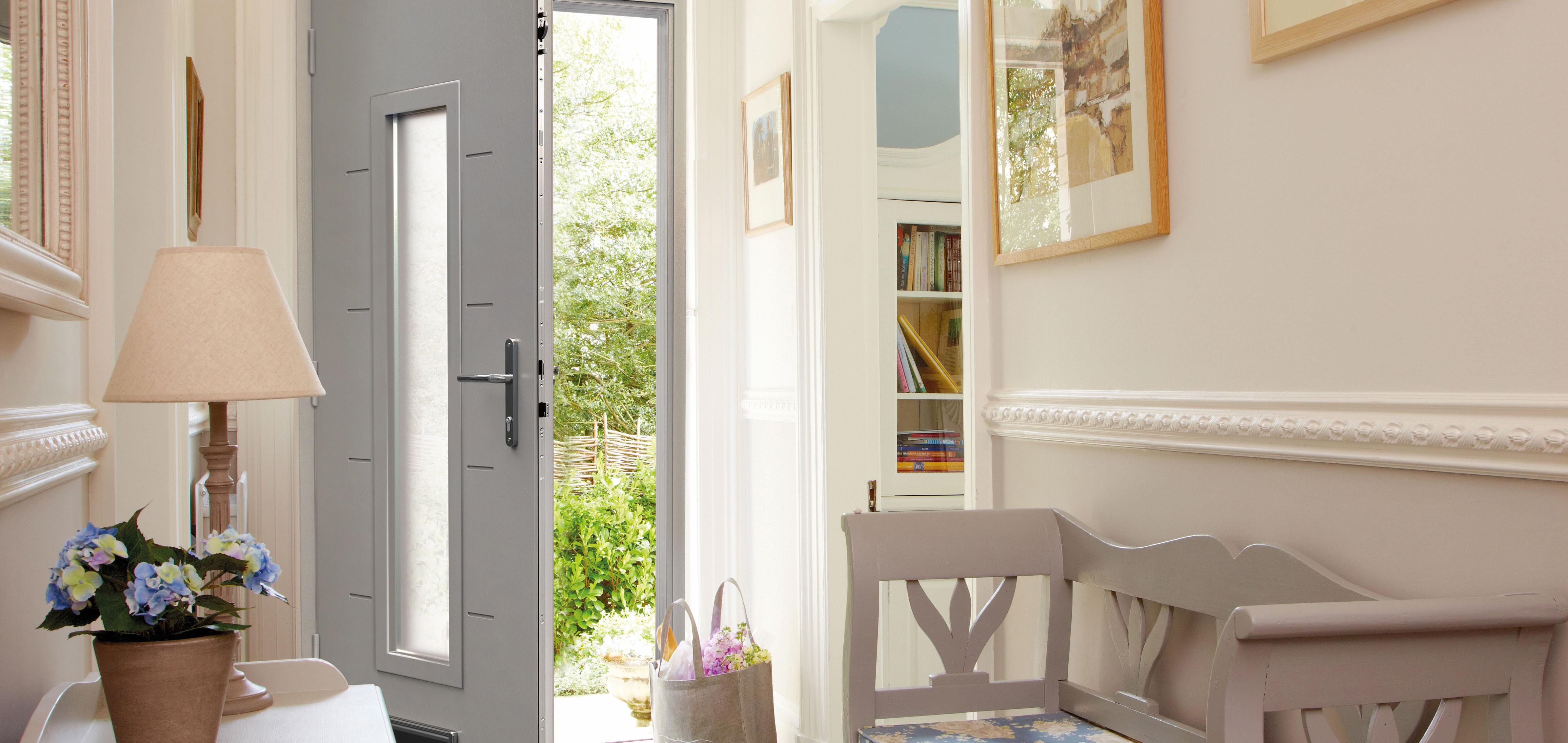 The single colour frame and door leaf has a colour matched weather bar, and the doors can