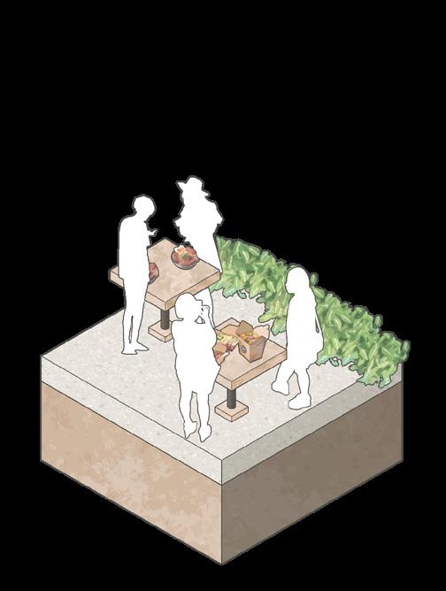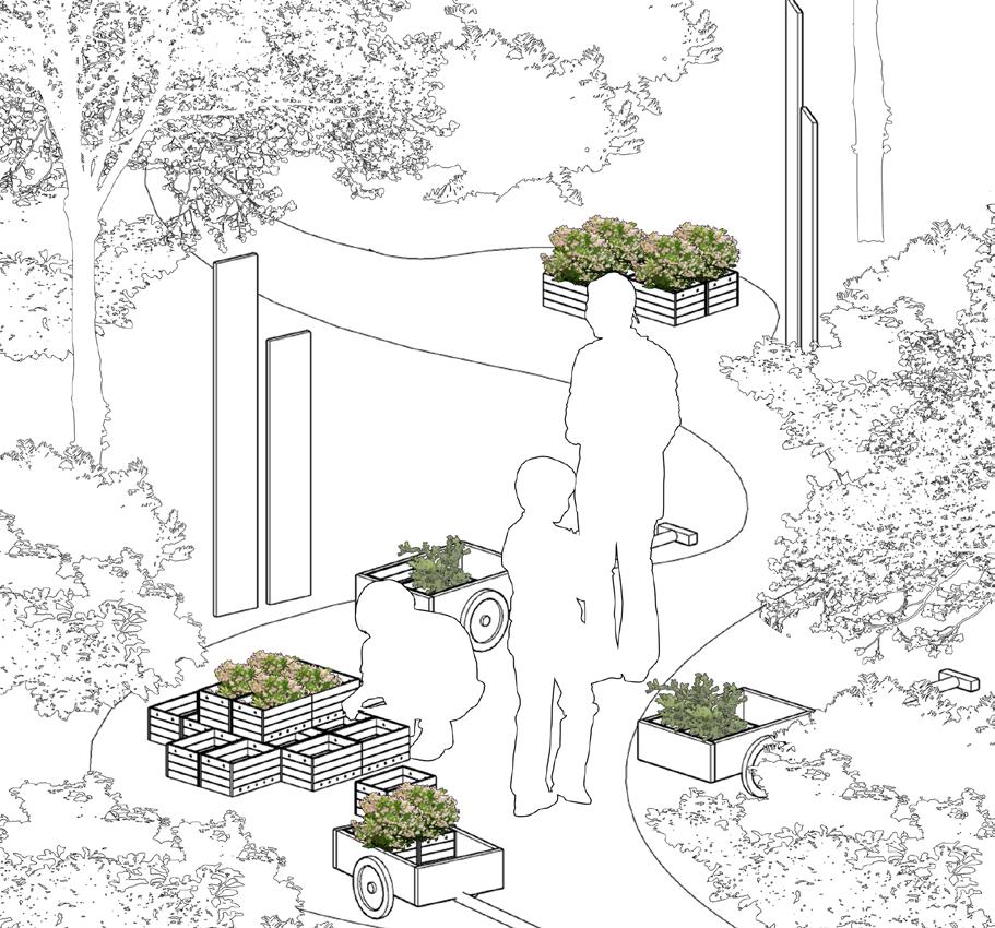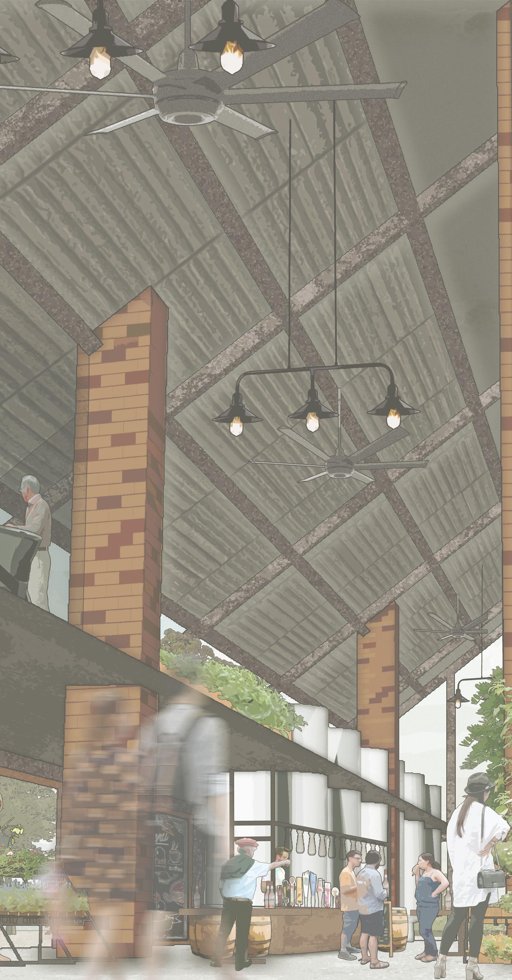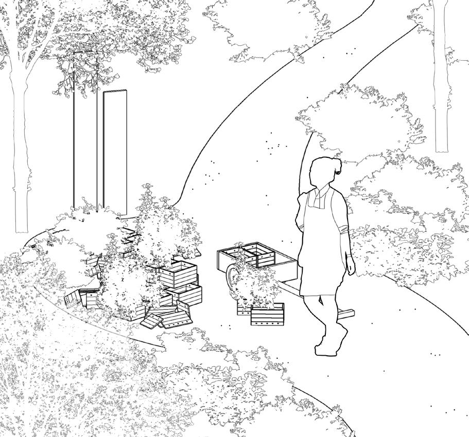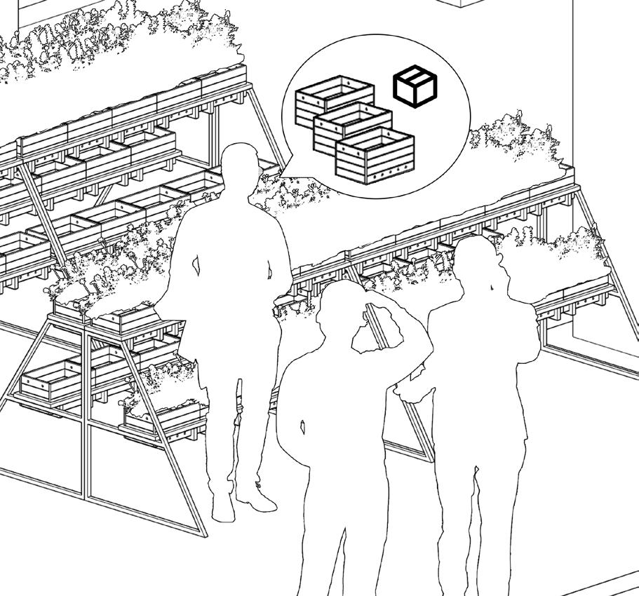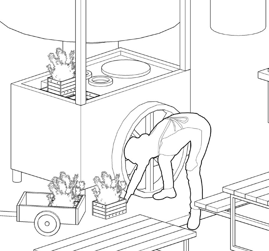 The two spaces are dedicated hospitality centre, small business incubator, and the nursery for all herbs cultivated on-site. By promoting small-scale, flexible activities and highly-customizable spaces, these two spaces are designed to encourage interaction of short-term for visitors, and long-term for any groups of interests.