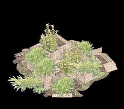 “The Wandering Botanist” is an experimental take on the topic of productive landscape. As research has shown that the production of staples in Singapore is highly limited for landscape approach, other produces, such as herbs and spices, with high economic, ecological, and social value that can be easily cultivated offers opportunity to catalyse design that bonds food production and everyday living closely. Considering the location of the design: the newly proposed “The Long Island” project, has already listed goals such as building future urban living and incubating new cultural context, the design also explores culture and tourism development based on human-morethan-human interaction, especially on how landscape and visitors can shape each other over the years in sustainable ways.
