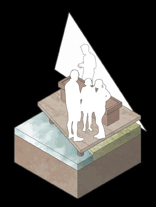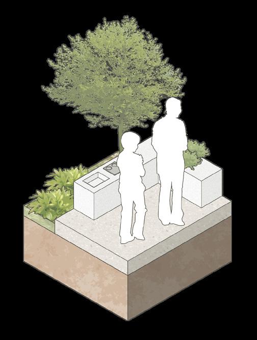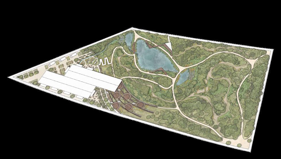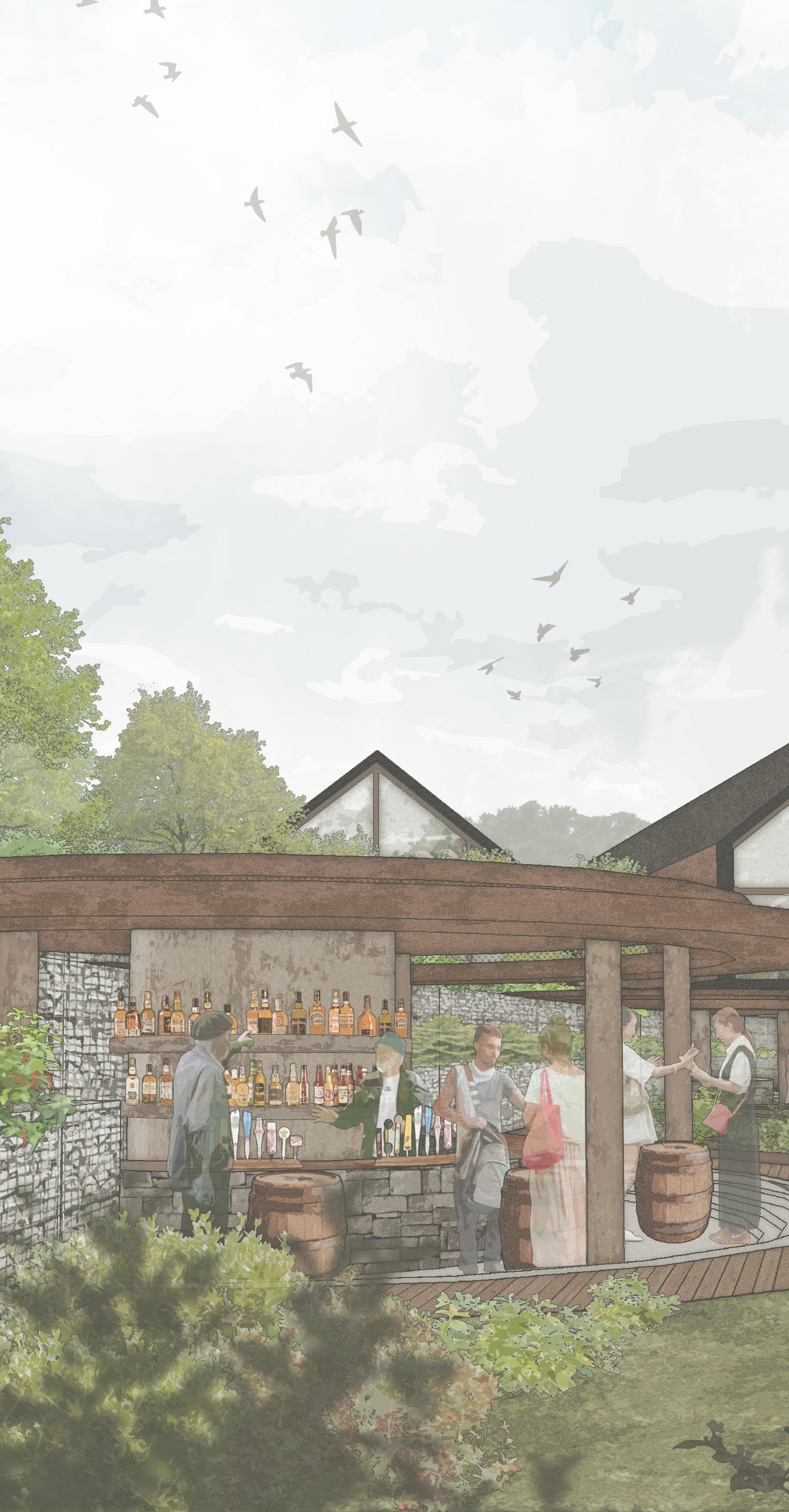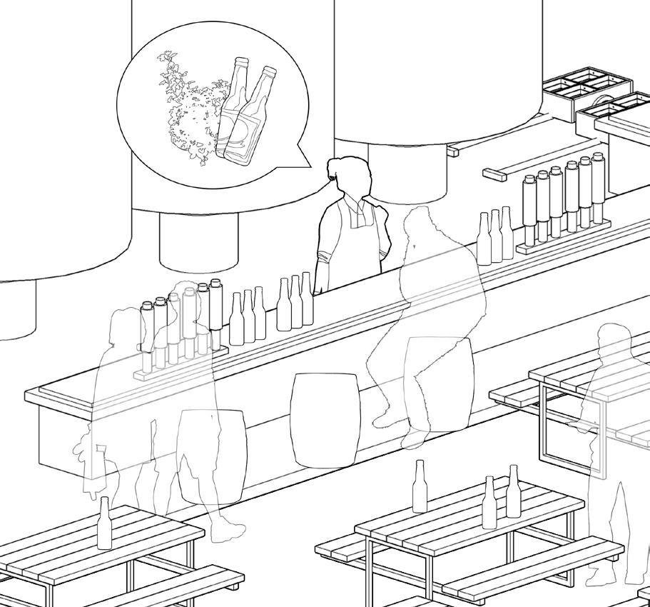 Two beer-related featured spaces aim to provide visitors rich and unique experiences when wandering through the site. The Tap Shelters design focuses on making a private and excusive social space, while the Refreshing Ponds doubled as a WSUD system to process water for on-site consumption and connection between the site and the nearby greenbelt treatment system.
