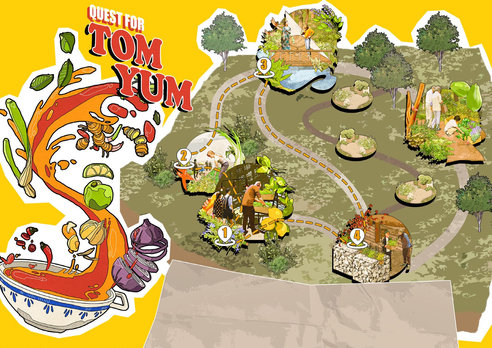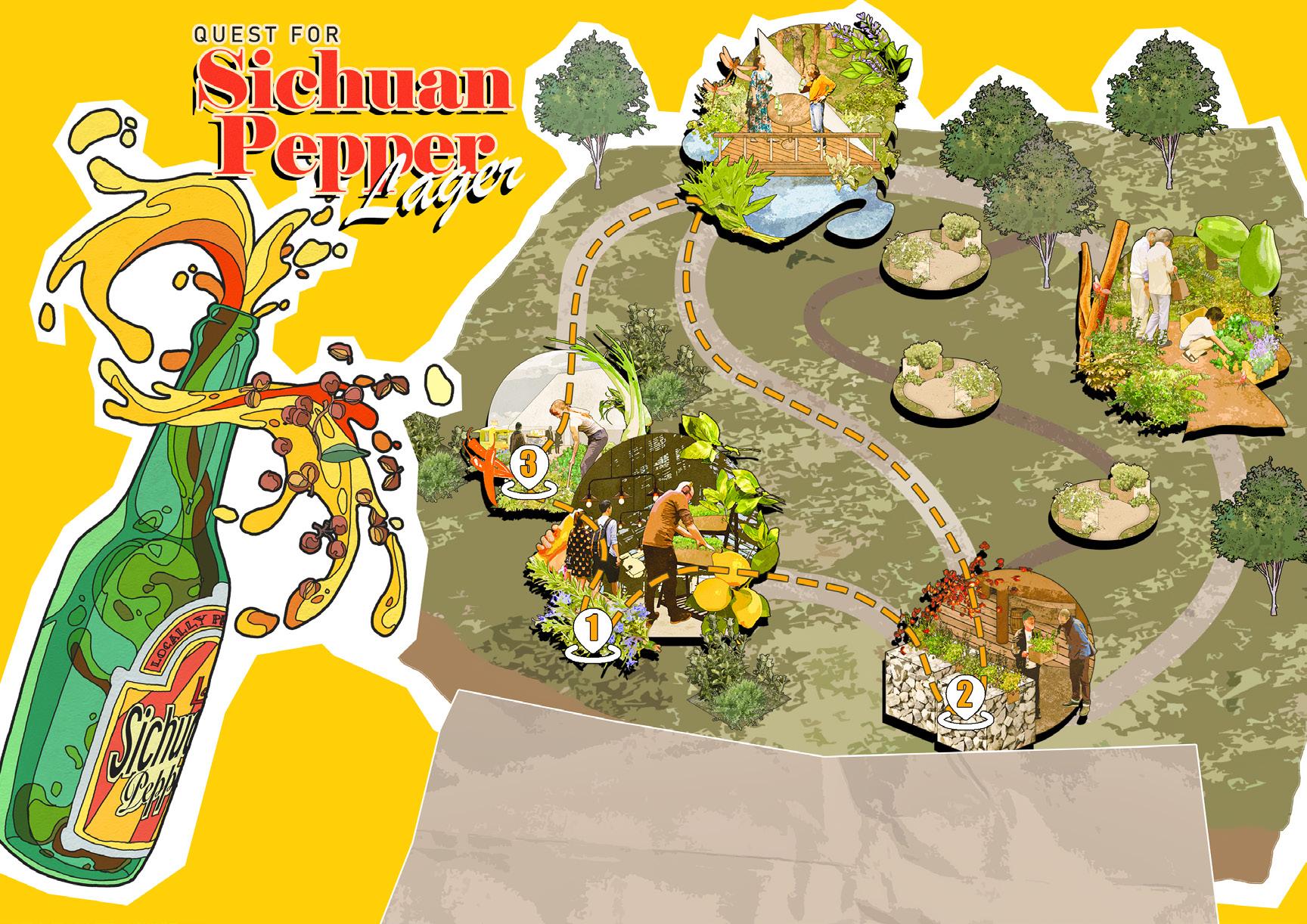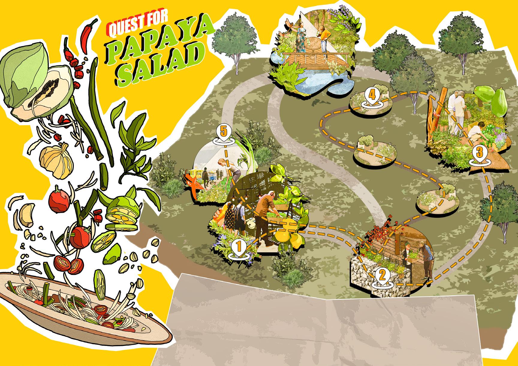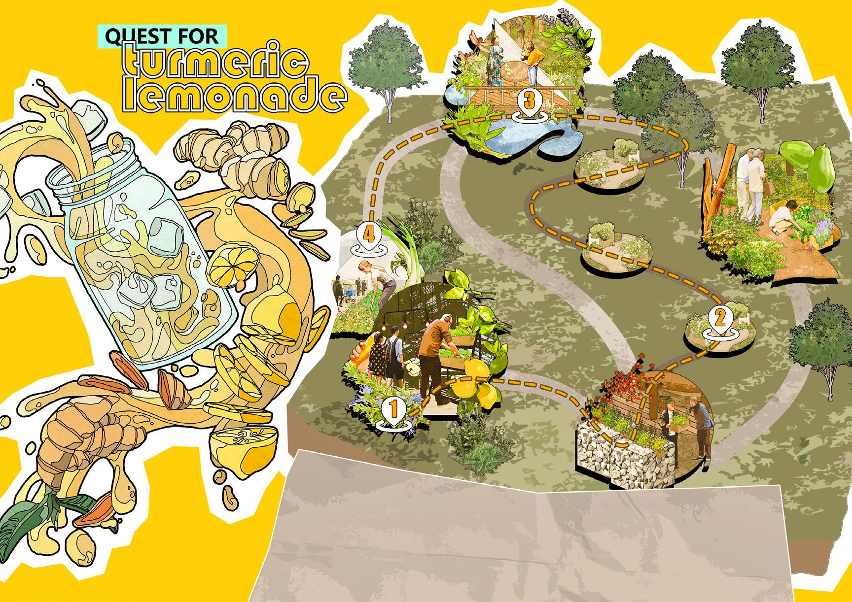 Another activity the design highlighted is the “Recipe Quest”, an RPG(Role-Play Game)-inspired approach to encourage visitors to explore the site via approachable topics on food and drinks. As the use of herb is both an essential cultural element around the world and the feature that makes Asian cuisine unique, the culinary-based site walk is not only attractive in cultural aspect, but also encouraging in exploring and experience the distinct scent, color, and vibe in each part of the site.