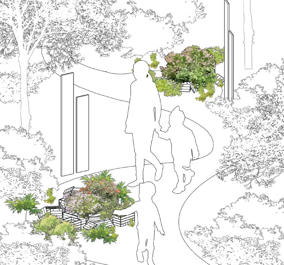 Based on the topic of “herb cultivation” and “interaction”, “The Wandering Botanist” project proposes a landscape design in which spatial planning is based around how human and more-than-human would use herb, as well as how herb can be used for placemaking and for navigating through the landscape. The design also aims to catalyse small-scale, sustainable businesses related to herb such as craft beer brewery and food carts, and the future connection-building with the surrounding WSUD and community via herb.