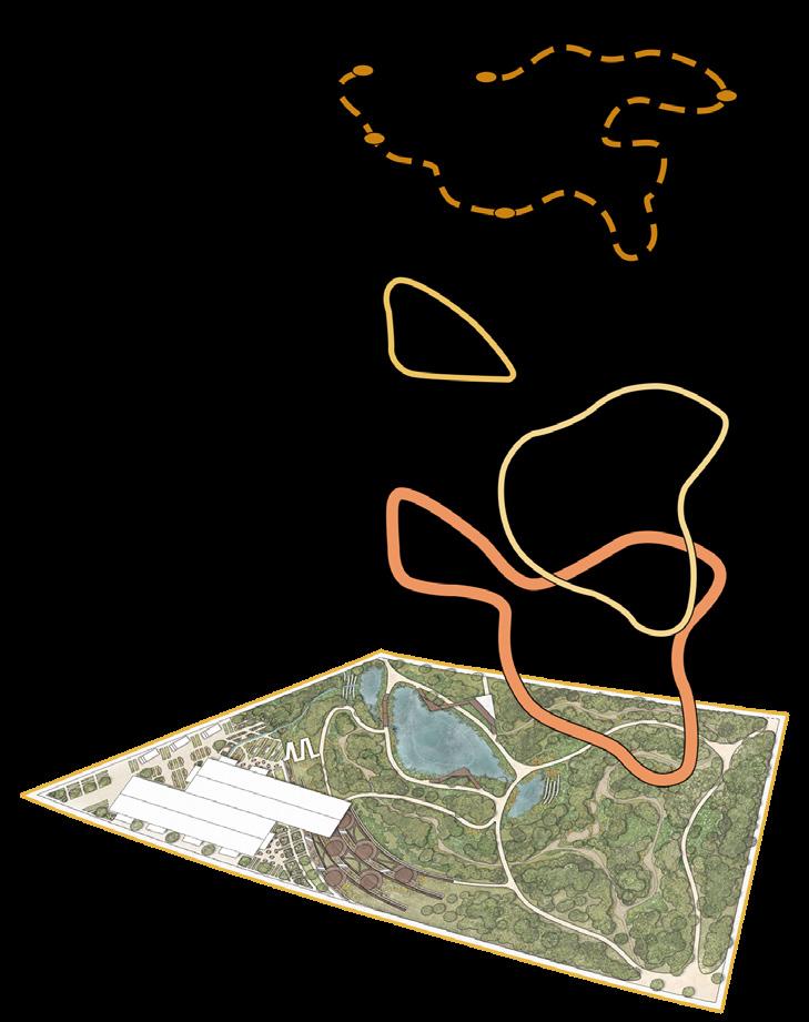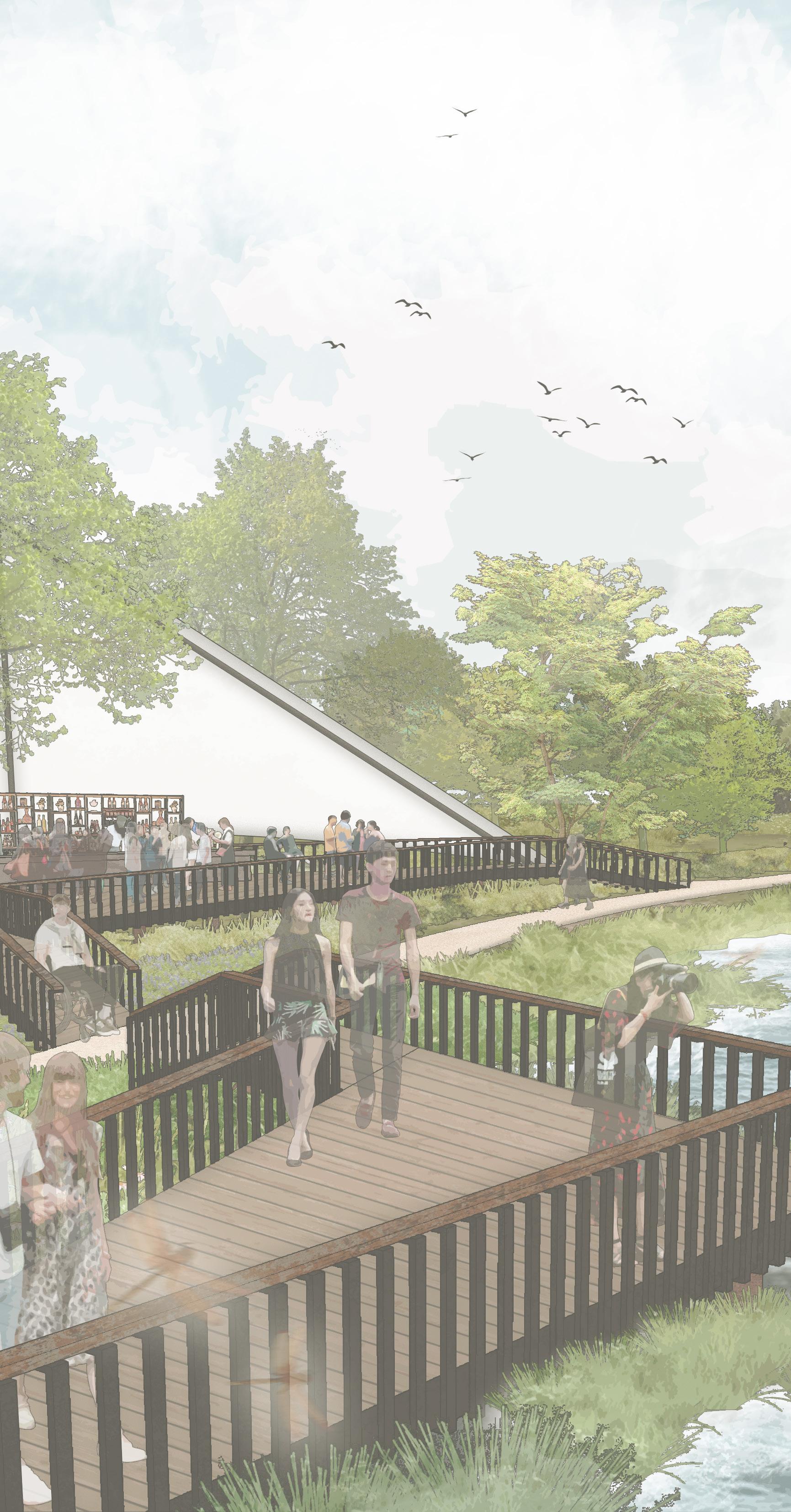 As designs in detailed scale and planning on site scale all follows the idea of looking at landscape as a framework, the flexibility of operation and indirect guidance given in design initiates interaction between human and more-than-human in different scales, contexts, and temporal sequences.