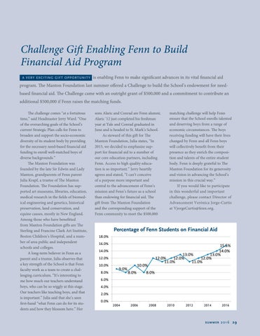 Challenge Gift Enabling Fenn to Build Financial Aid Program A very ex citi n g g if t opp or tu n i ty