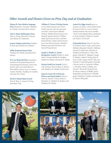 Other Awards and Honors Given on Prize Day and at Graduation Eleanor B. Fenn Modern Language Prize: Benjamin I. Faerman, Thaddeus M. Scheibe, and Maxwell K. Steinert