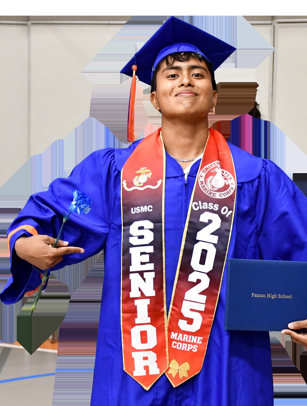Fenton continued honoring alumni by selecting two students for the Patrick Robert Curran Memorial Scholarship and one student for the are community and alumni funded scholarships. New in 2025 was the Travis Hall for Heroes Scholarship, which is sponsored by firefighters in Bensenville and Wood Dale. It honors a local teenager who provides dinner to nearby fire departments on September 11th every year by fundraising and soliciting restaurants for food donations. Two Fenton students were selected based on their goals of studying fire science, public safety, emergency medicine, or other related fields.