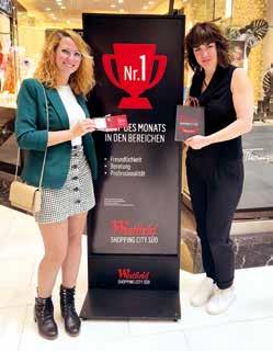 Das Center Management prämiert monatlich jene, die das „Westfield-Erlebnis“ möglich machen: die vorbildlichsten Shops und deren freundliche MitarbeiterInnen. Im Auftrag der Leitung der Westfield Shopping City Süd sind kontinuierlich unabhängige „Shop-Prüfer“ unterwegs, die laufend die Qualität der Geschäfte und die Beratung des Personals überprüfen. Diese „Mystery Shopping“-Ergebnisse dienen auch dazu, den Shop des Monats zu prämieren. Der ausgezeichnete Betrieb bekommt einen Aufsteller sowie einen schönen „Wanderpokal“ und die ausgezeichnete Verkäuferin bzw. der vorbildliche Verkäufer erhalten als Belohnung eine Westfield Gutscheinkarte im Wert von € 100,-.