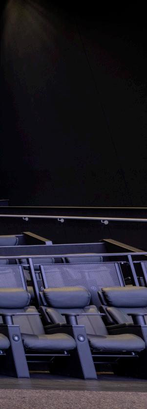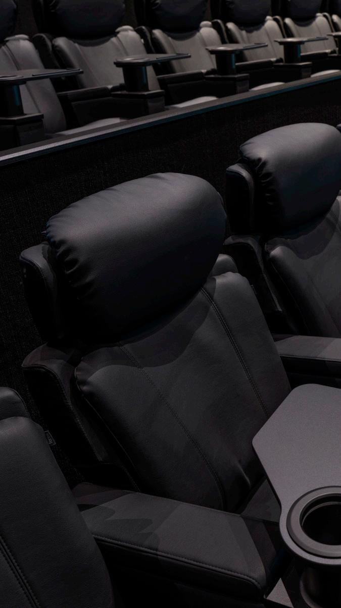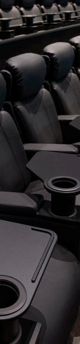 For the ultimate in luxury, the cocoon-style suite seating offers a sanctuary of personal comfort. With integrated adjustable lighting, reclining features, and tactile privacy, these seats create an intimate, focused viewing experience. Swivel tables provide seamless access to gourmet snacks and drinks—bringing premium dining to the big screen.