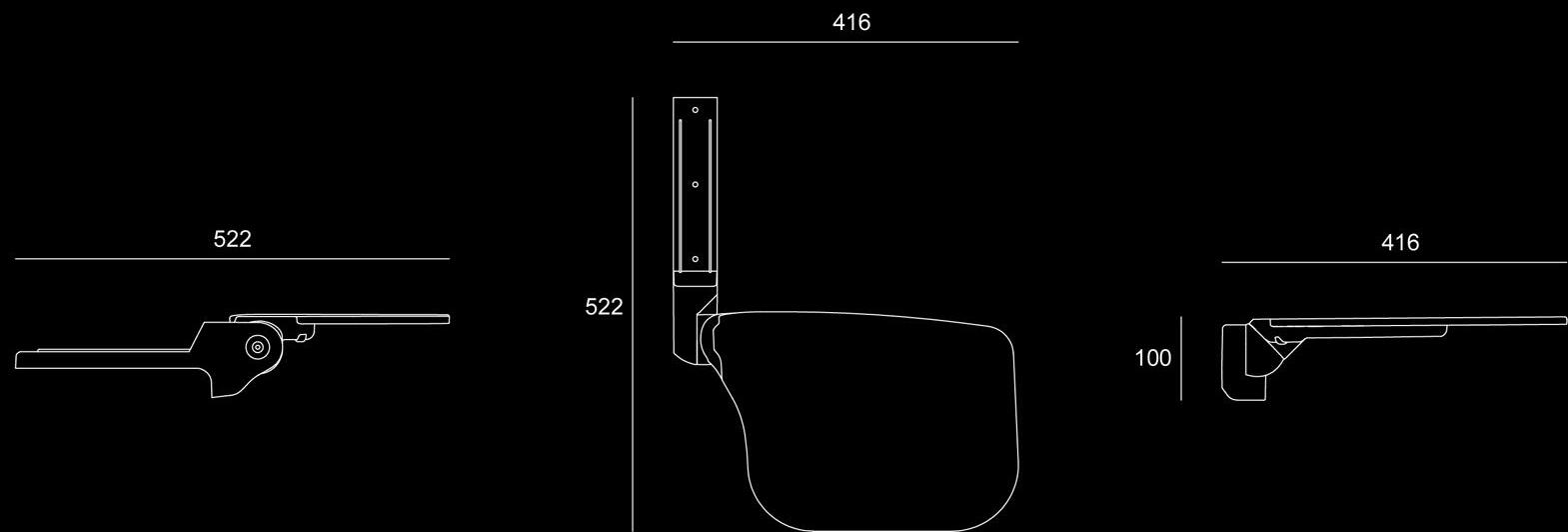 The folding is performed manually in a smooth and continuous movement. The support surface is made of ABS and has a thickness of 10 mm. This material is highly resistant to impact, heat and scratches.