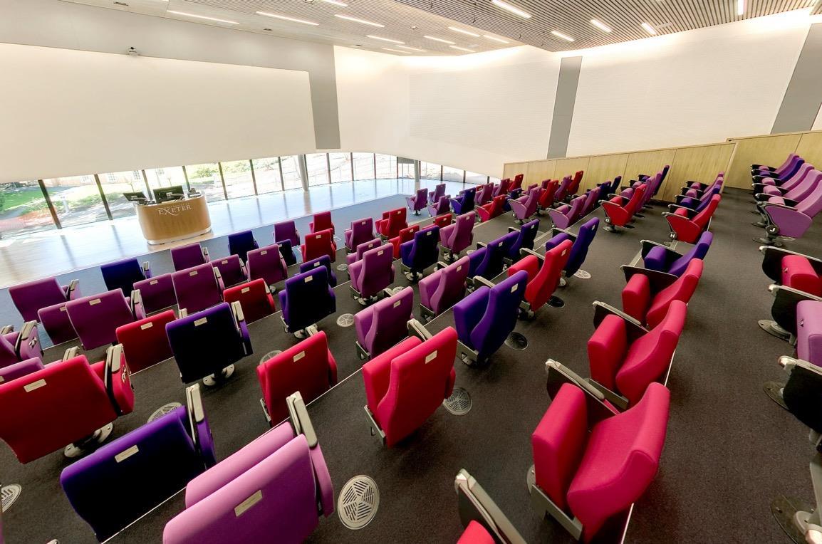 In the case of Exeter Forum, the FT10 Lecture seat was fitted with the world's leading integrated writing tablet, the patented A3 wrimatic is suitable for both left and righthanded student fully upholstered contoured back