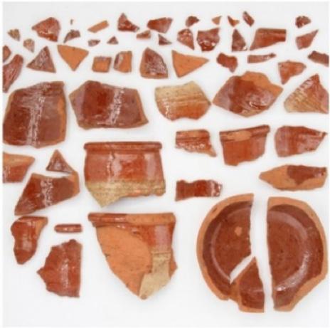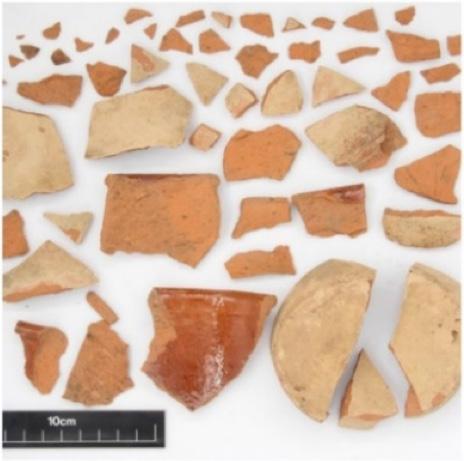 Brot úr leirkerjum fundust einnig frá tíma myllunnar, meðal annars fjögur úr sama íláti (F-1, F-2, F-993 og F-995), krukku úr rauðleir með glærum glerungi. Brotin mætti líma saman og endurgera þannig ílátið sem gæti hafa verið notað til að hella korni í kvarnarstokkinn.
