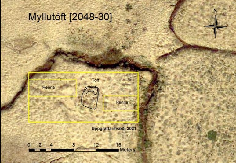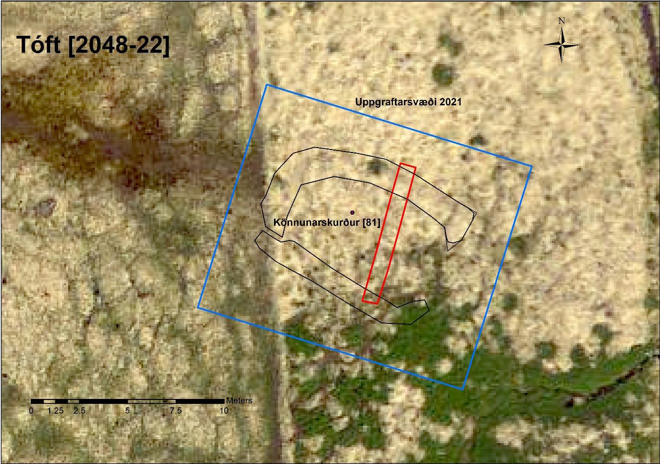 Minjastofnun fór einnig fram á að grafinn yrði könn unarskurður í tóft [2048-11] til að kanna hlutverk og aldur tóftarinnar og hvort eldri minjar leyndust undir henni.